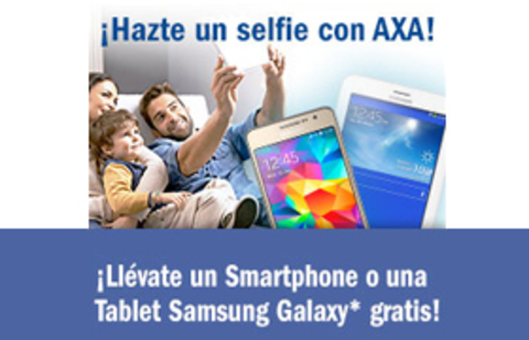 Ahora con AXA puedes inmortalizar tus mejores momentos. Llévate un Smartphone o una Tablet Samsung Galaxy* gratis. Promoción válida desde el 01 de febrero al 30 de Abril del 2015 o hasta fin de existencias.